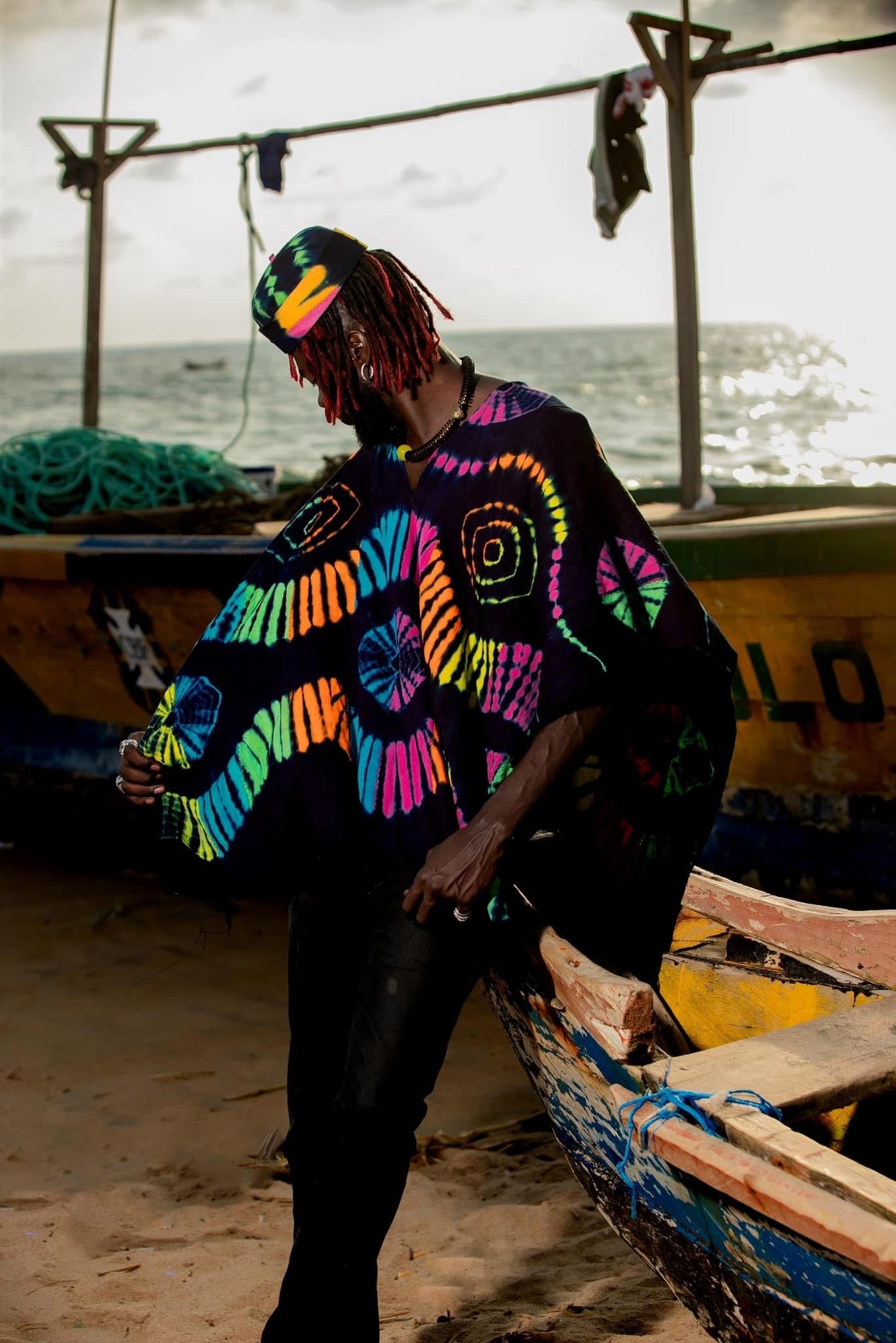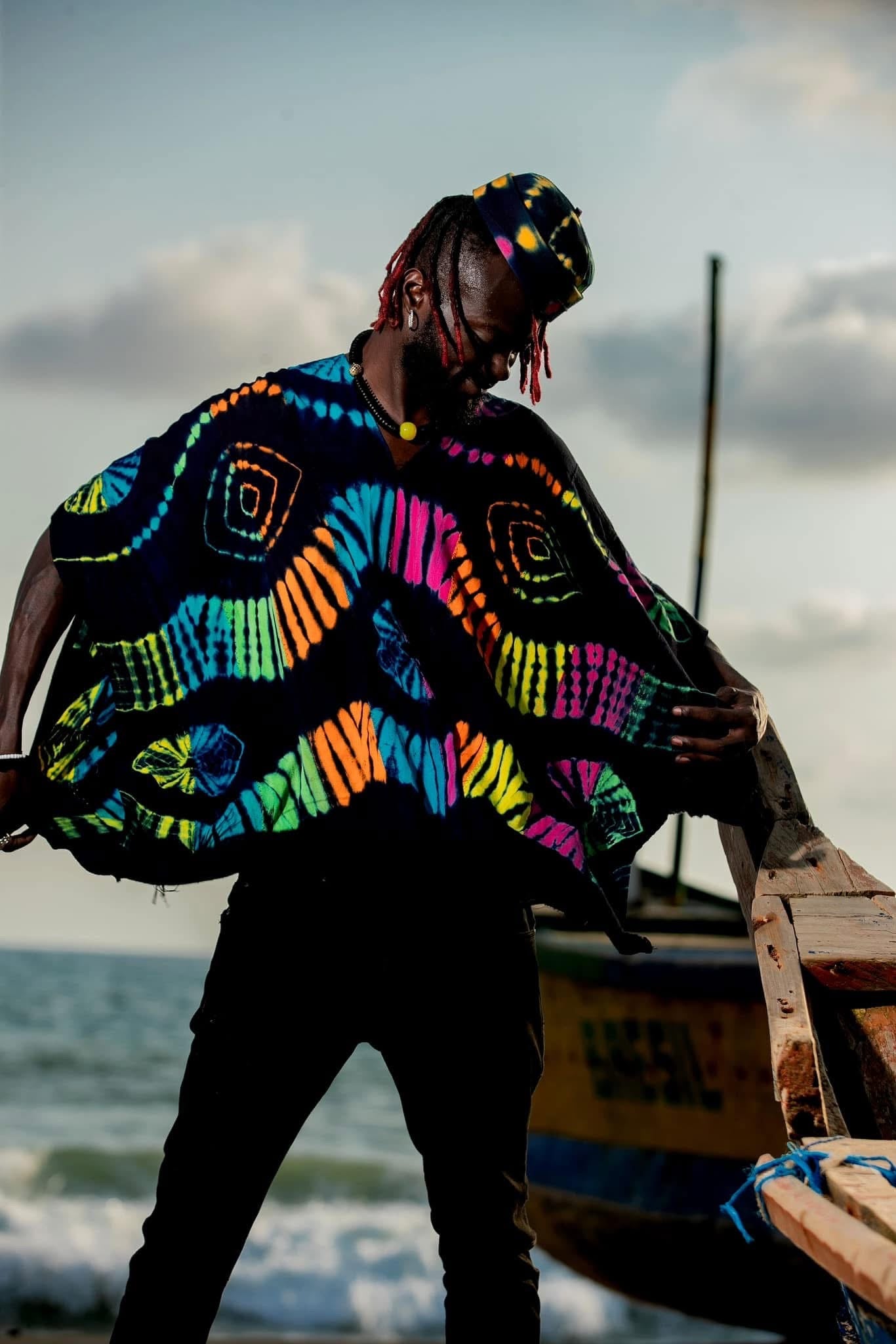 Cape Artisanale mixte - Colors en Tissu Kita 100% Coton Tissé et Teint à la Main Taille Unique